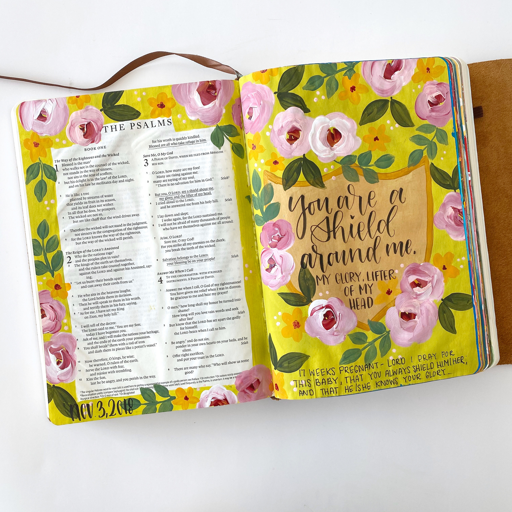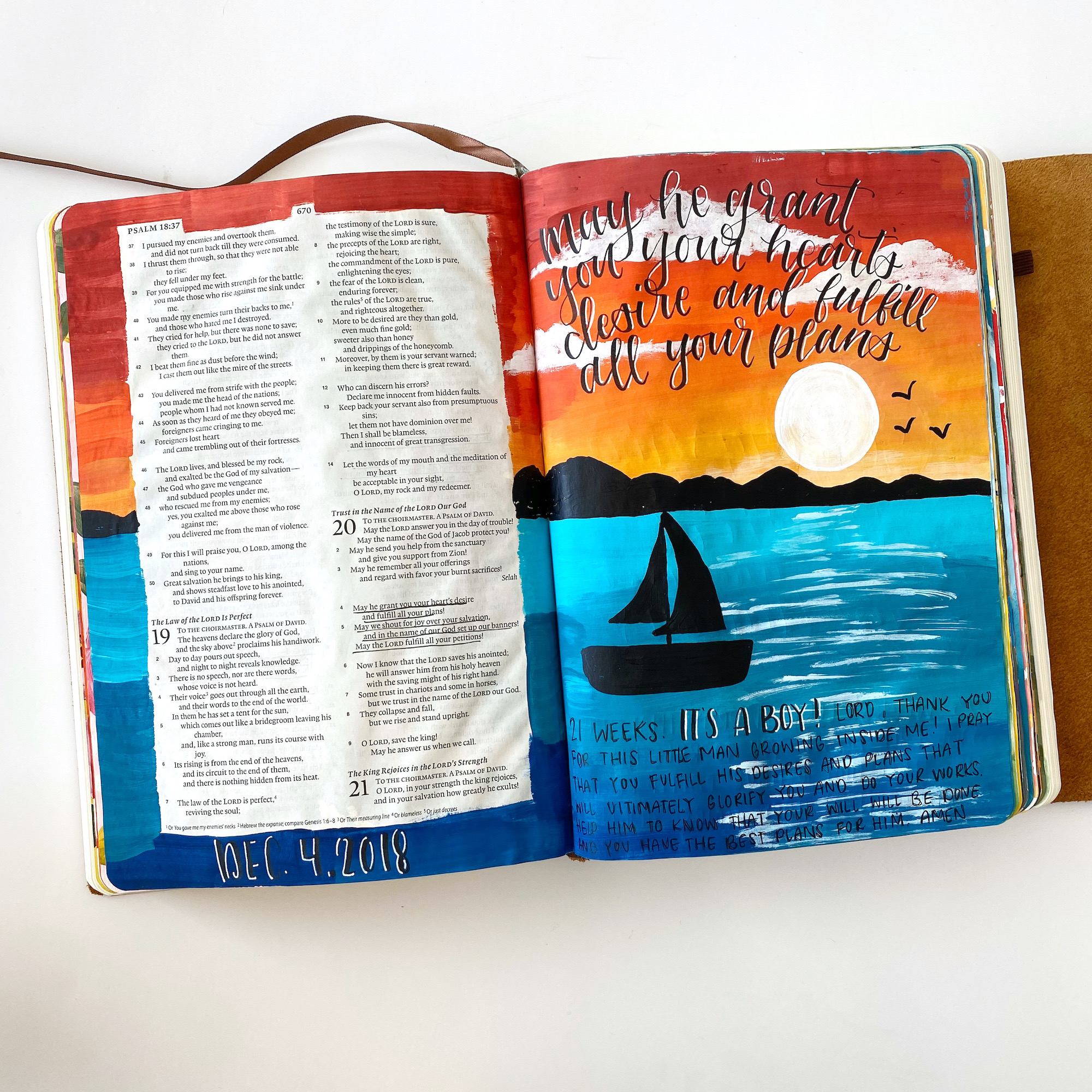 Back in 2018, when I found out I was pregnant, I decided I wanted to start a journaling Bible for the baby to give to him one day. While all my journaling Bibles allow me to get in the word and meditate on the scripture, I am going about this one a little differently. When journaling in this one I meditate on the scripture specifically with my son, Clark, in mind and pray it over him.