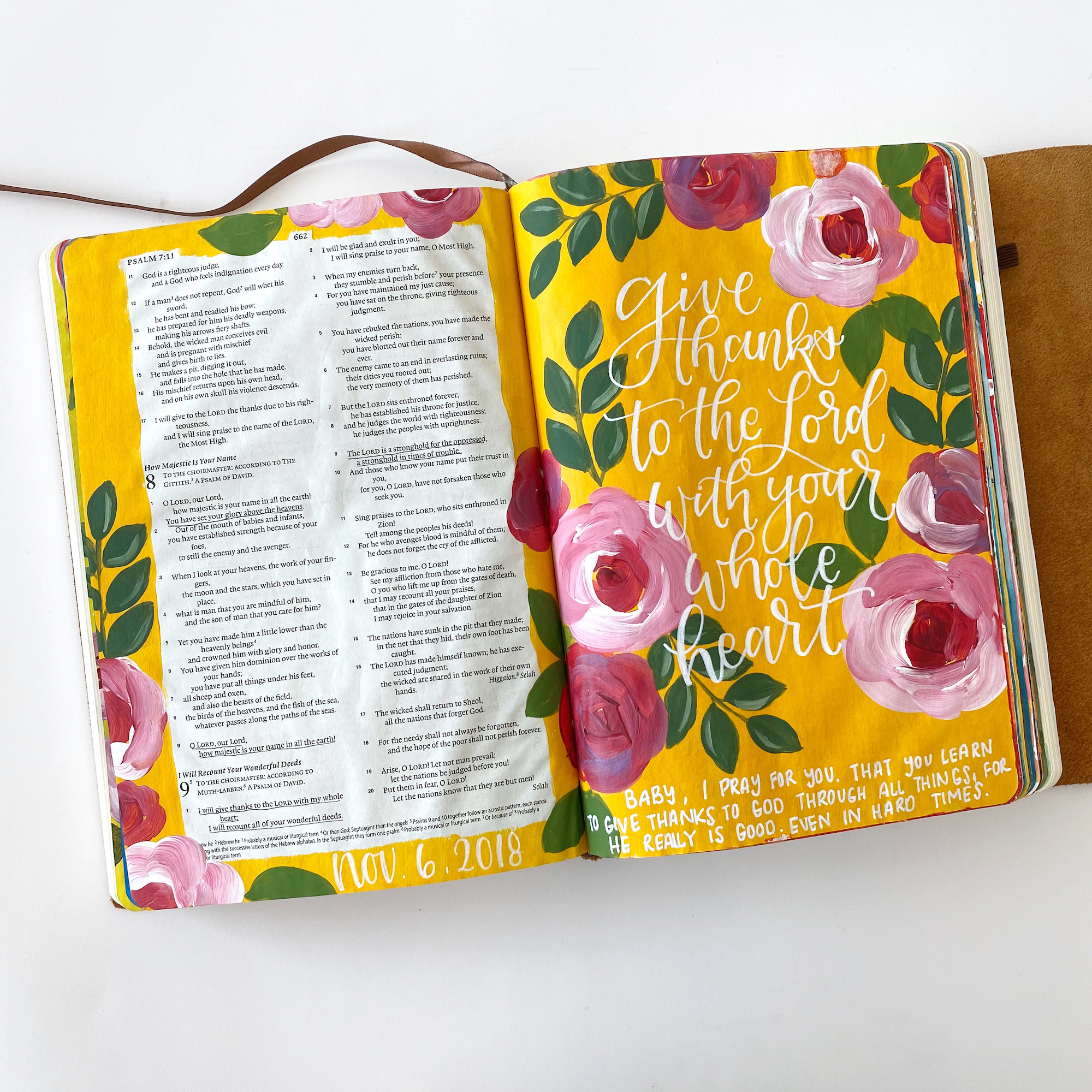 My idea was to journal through Psalms first. (Then I’ll go book by book, most likely starting in the New Testament.) I was going to wait to do a flip-through of it until I finished Psalms, but seeing that that is most likely another year away, I decided to do a “Psalms part one” flip-through of what I’ve done so far!